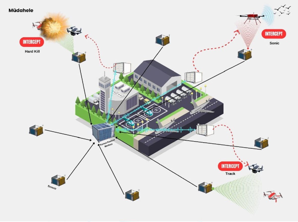 7/24 çalışacak sistemin radar, termal ve optik kameralar ile RF sensörlerinden gelen verileri birleştiren sensör füzyonu yapısı sayesinde aynı anda çok sayıda hedefi izleyebileceğini söyleyen Uraloğlu, “Yapay zekâ destekli tehdit sınıflandırma modeli sayesinde de FPV dronları analiz edebilecek; kritik durumlarda otomatik uyarı verecek ve insan-onaylı ya da otonom modda müdahale gerçekleştirebilecek.” dedi.