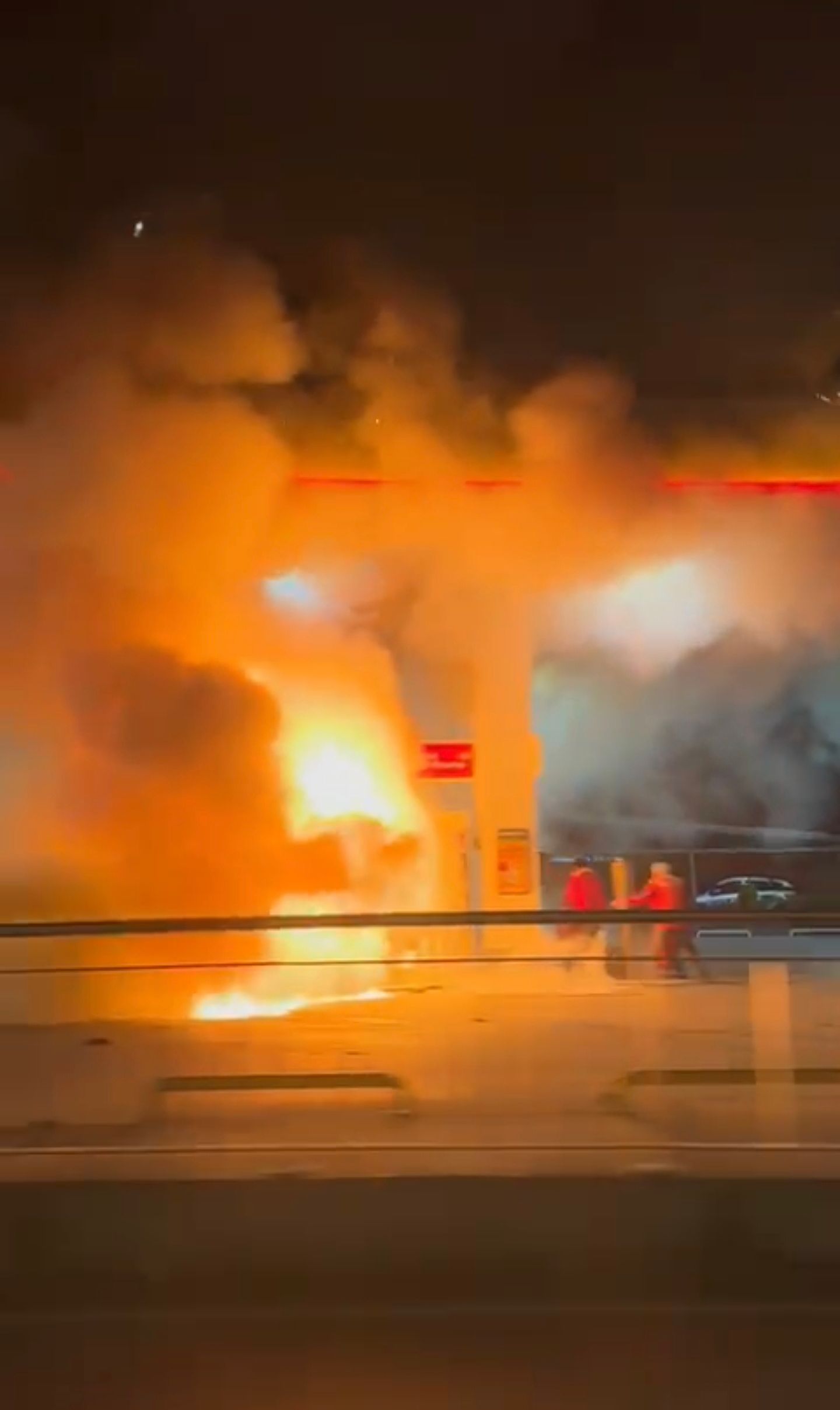 Yangın nedeniyle istasyonda ve kazaya karışan iki otomobilde de hasar meydana geldi. Polis ekipleri, çevrede güvenlik önlemi alarak istasyonu geçici bir süreyle araç giriş ve çıkışına kapattı. Olayla ilgili inceleme başlatıldığı bildirildi.