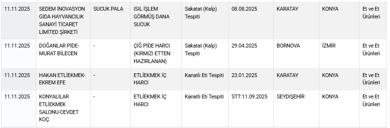 Afyonkarahisar, Konya ve İzmir merkezli bazı üreticilerin sucuk ve etli ürünlerde mekanik ayrılmış kanatlı eti veya sakatat kullandığı tespit edildi.